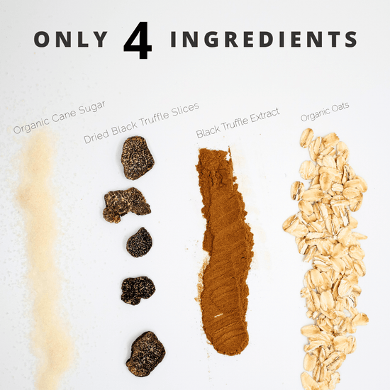 INGREDIENT: Organic rolled oats, Black truffle extra, Freeze-dried black truffle slices, Organic Cane sugar